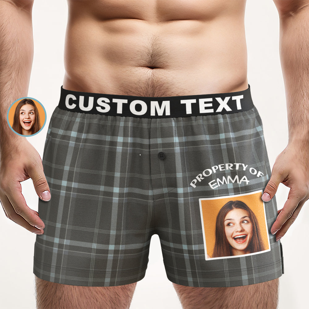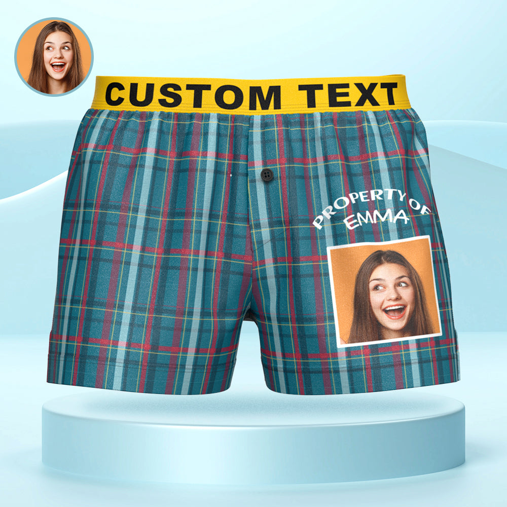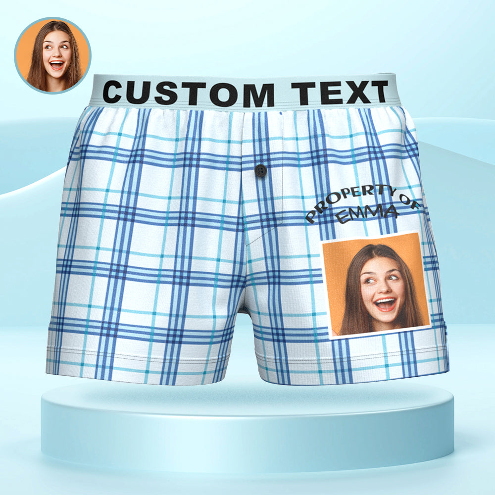 Custom Photo Striped Plaid Patterned Boxer Shorts Personalized Waistband Casual Underwear for Him