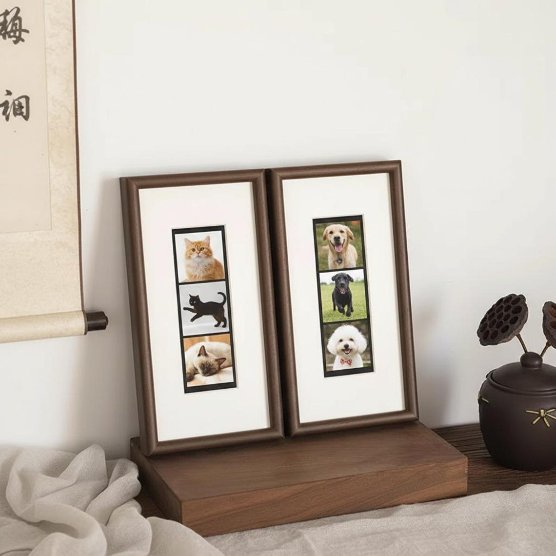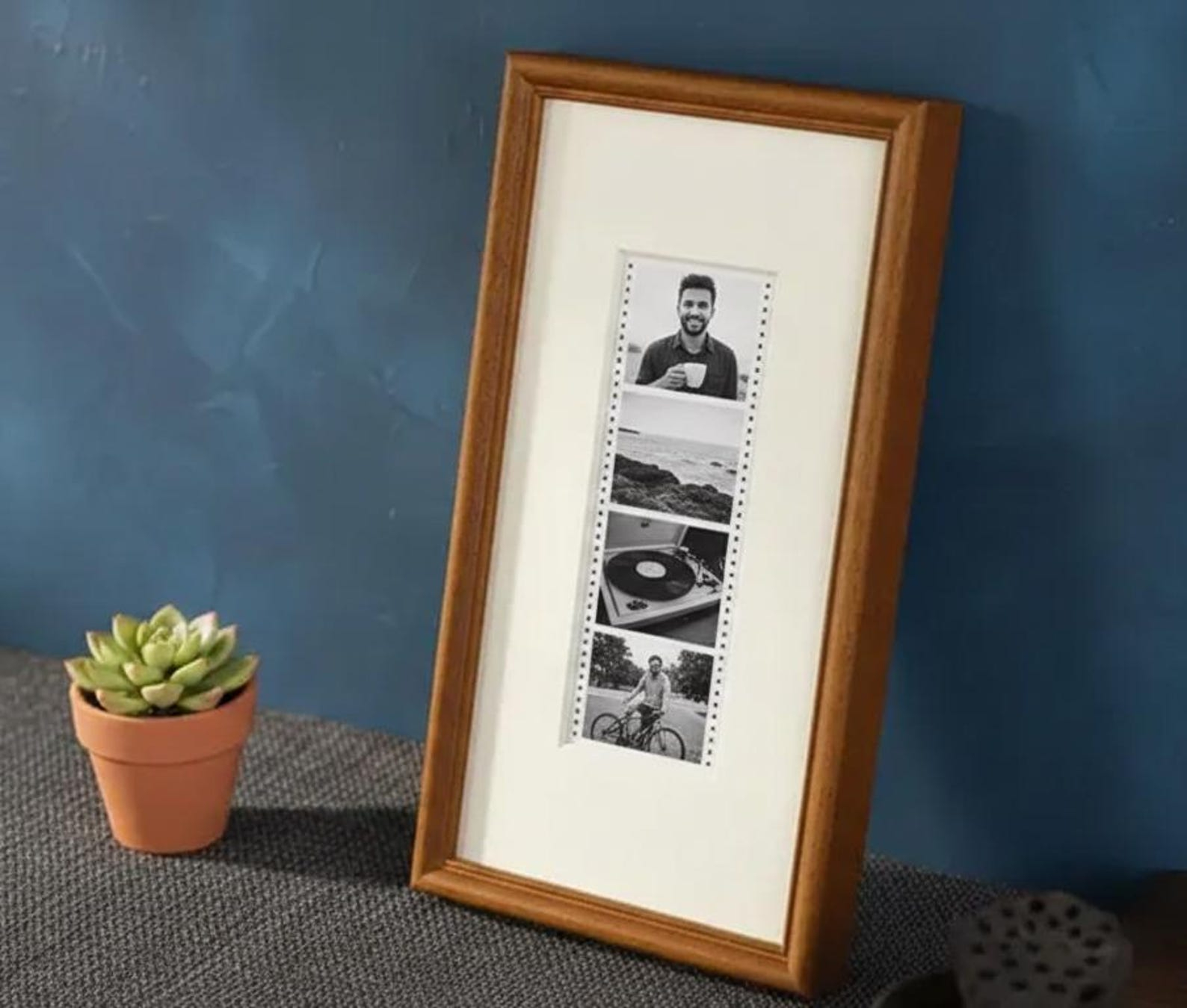 Its slim vertical silhouette naturally draws the eye upward, making it perfect for photobooth prints, Polaroid-style keepsakes, and other small sentimental photographs. The elongated format highlights each image in a clean, balanced way-turning simple photo strips into a refined wall display.