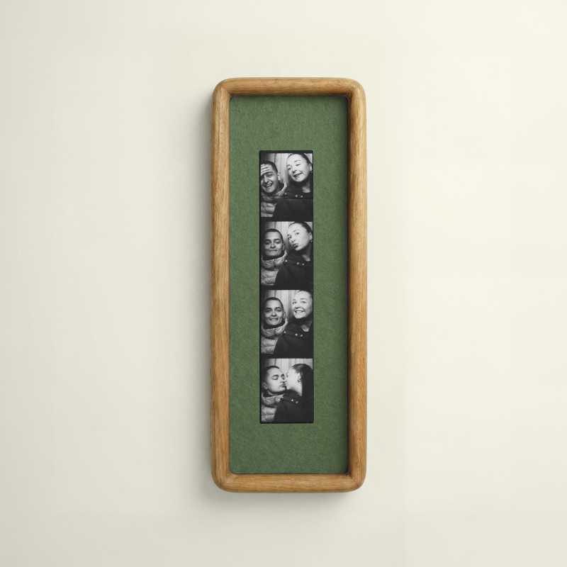 Custom Photobooth Frame for Photo Strip Prints: Elongated Solid Wood Picture Frame with Coloured Mount, Ready to Hang Wall Art