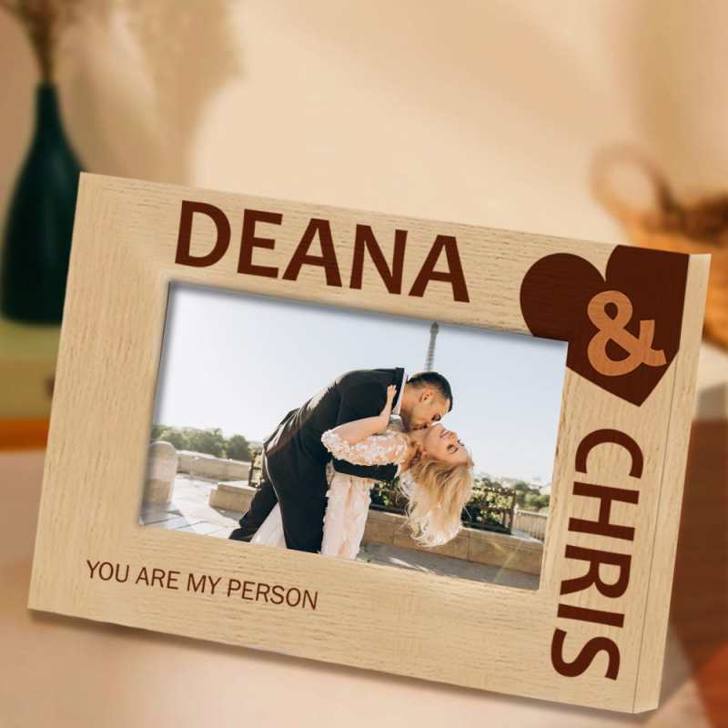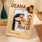 The creative design is delicately UV printed on a handsome, rich wood frame, then personalized with your names, words, and photo for a lasting and memorable keepsake for years to come. You can choose horizontal or vertical orientation.