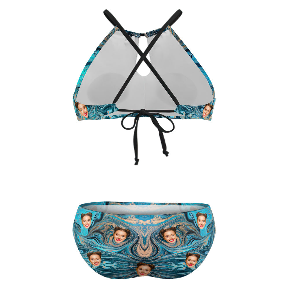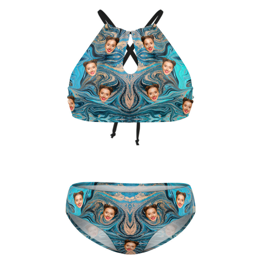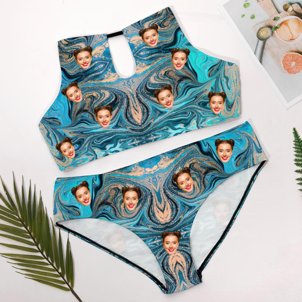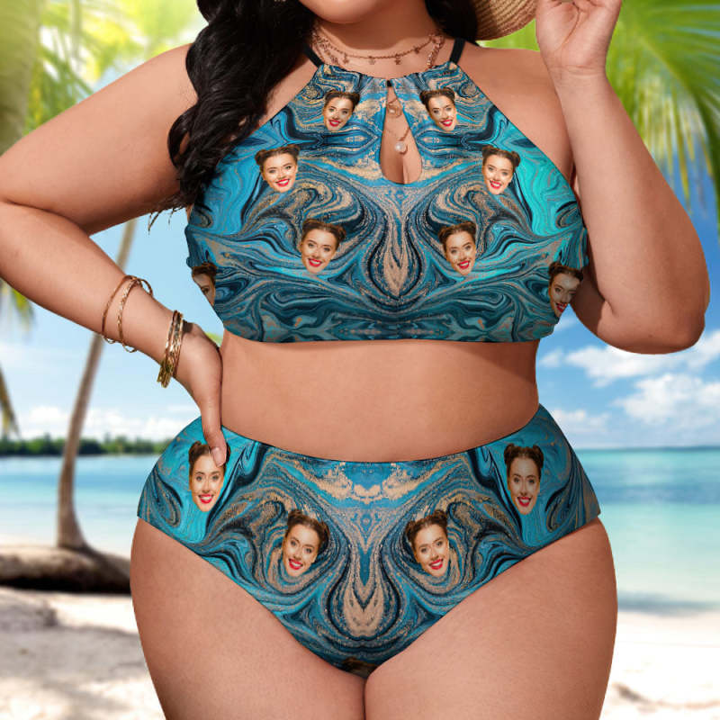 Custom Plus Size Swimwear High Waisted Bikini Swimsuit Gifts for Her - Quicksand Ripple