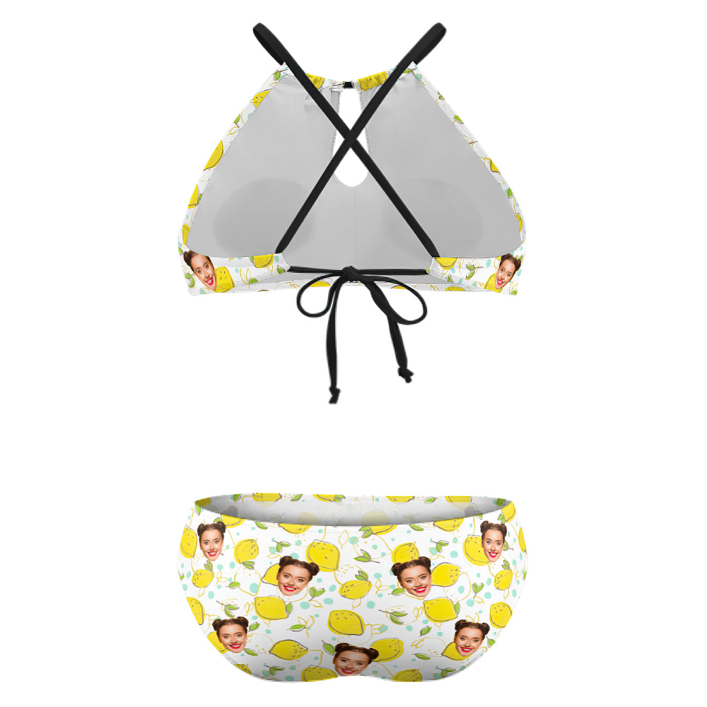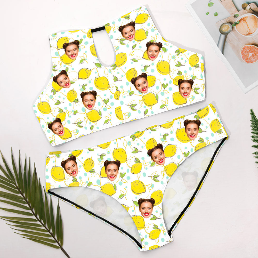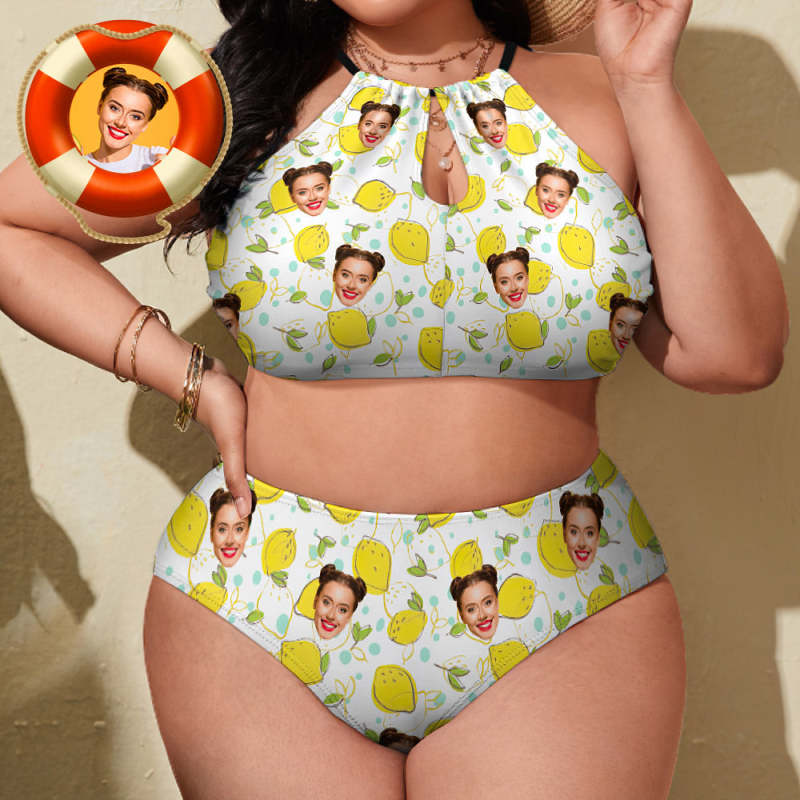 Custom Plus Size Swimwear Personalized High Waisted Swimsuit Travel Gifts for Girlfriend - Lemon