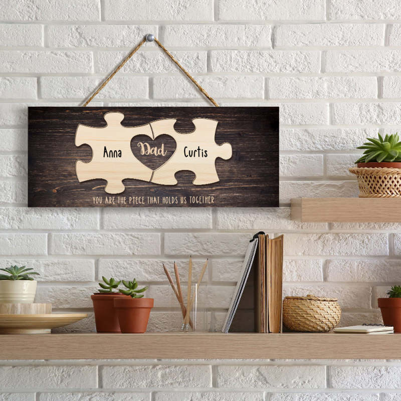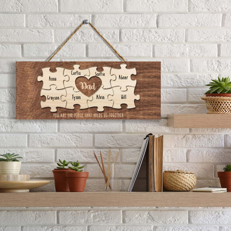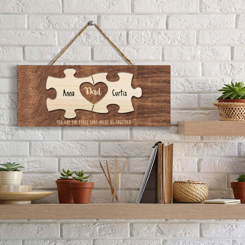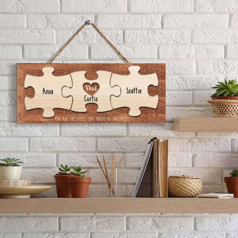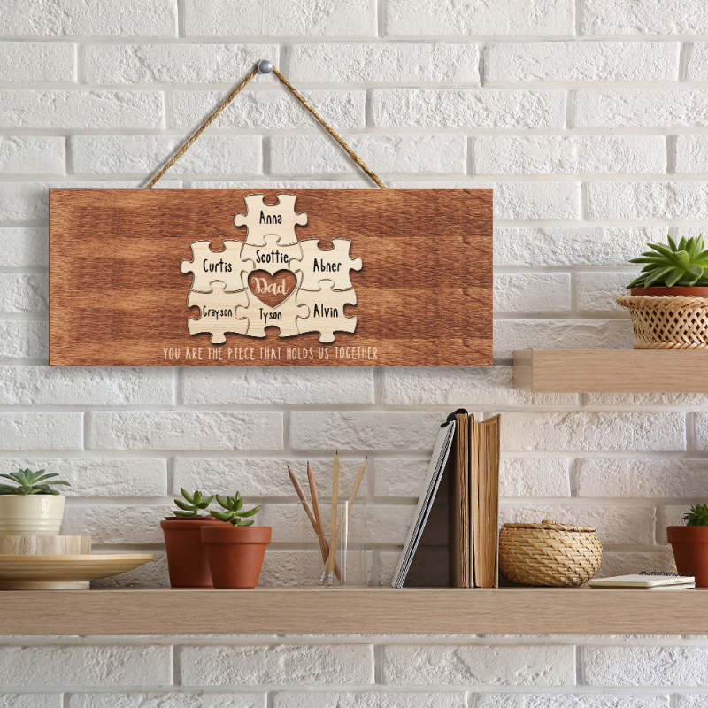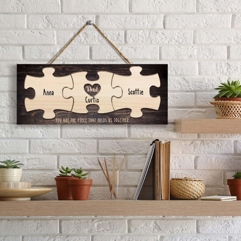 Custom Puzzle Sign Personalized Wooden Wall Art Decoration Father's Day Gifts for Dad
