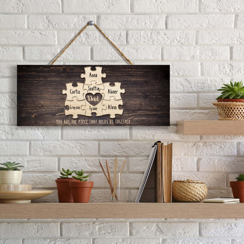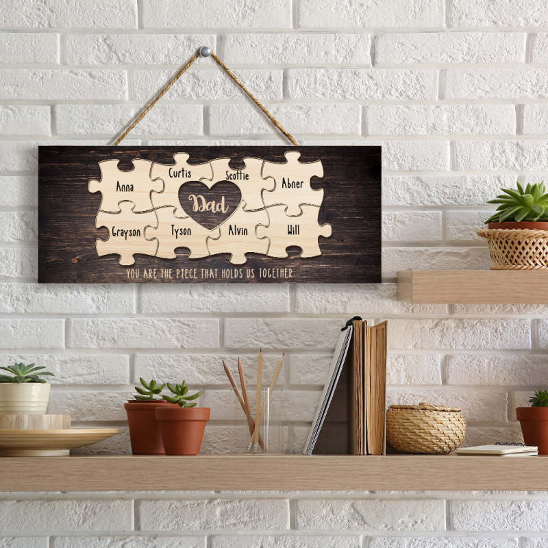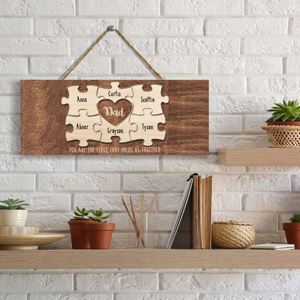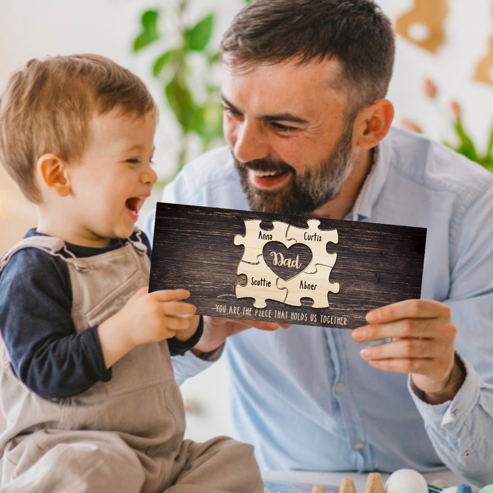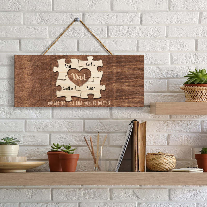 Custom Puzzle Sign Personalized Wooden Wall Art Decoration Father's Day Gifts for Dad