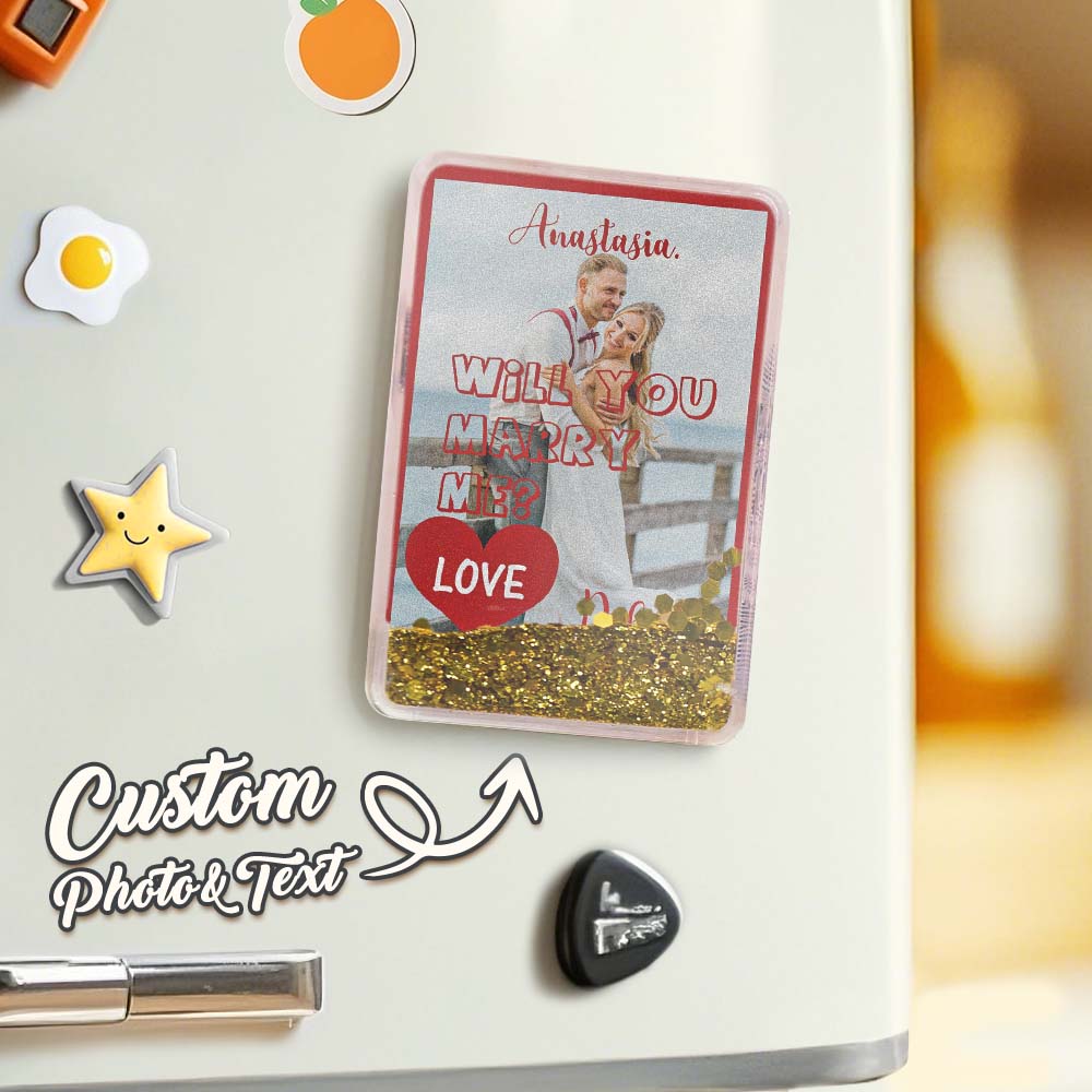 Custom Quicksand Fridge Magnet Personalized Photo Refrigerator Magnet Home Decoration Will You Marry Me