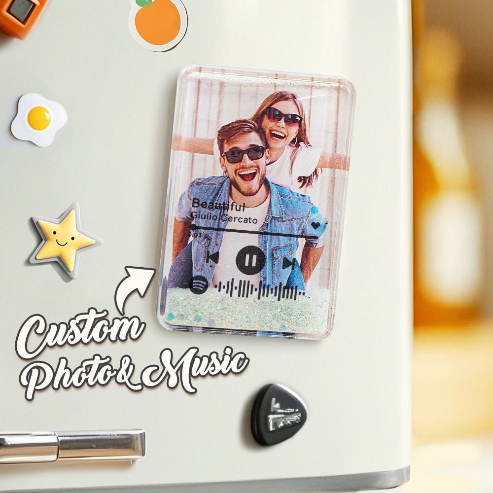 Custom Quicksand Fridge Magnet With Music Personalized Photo Refrigerator Magnet Home Decoration Gift for Couple