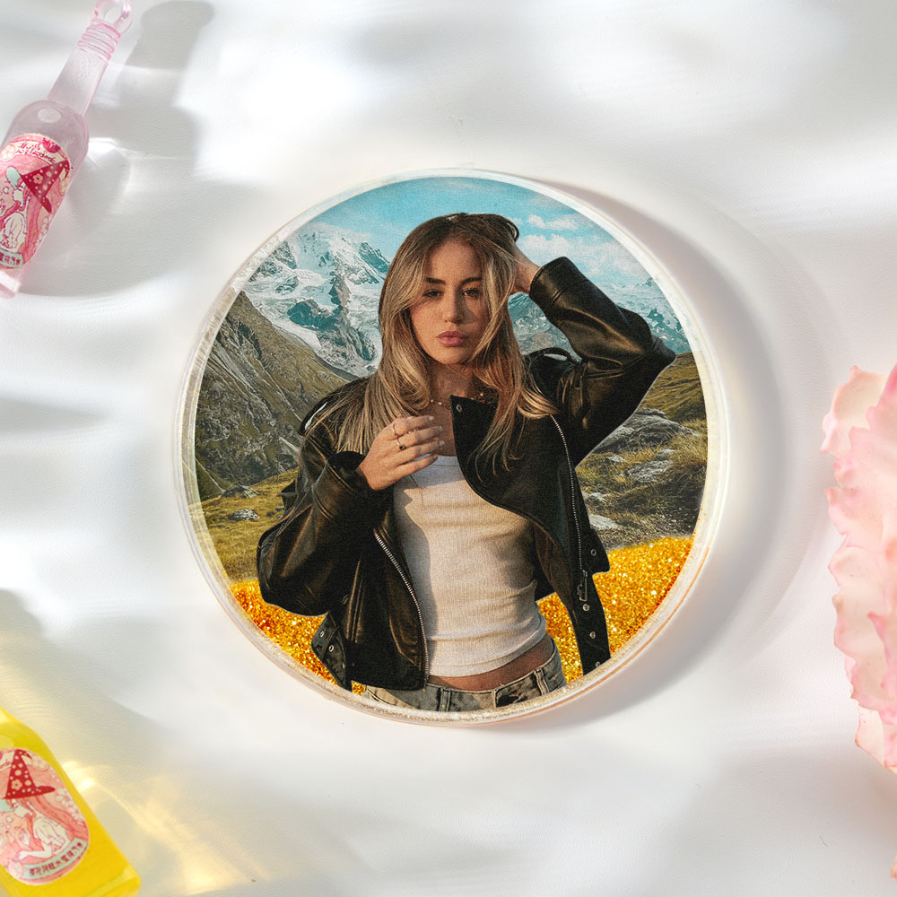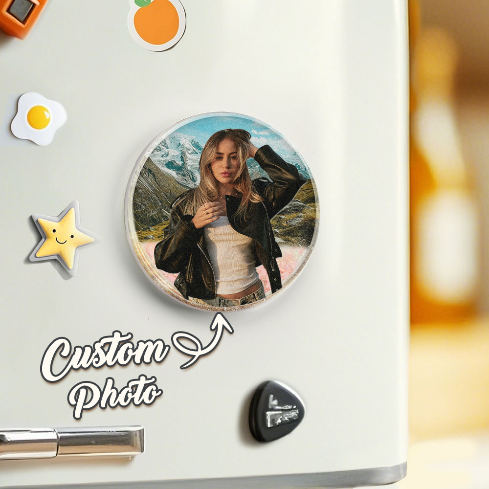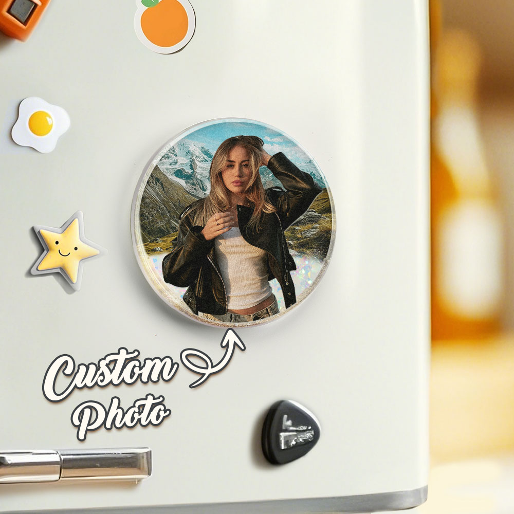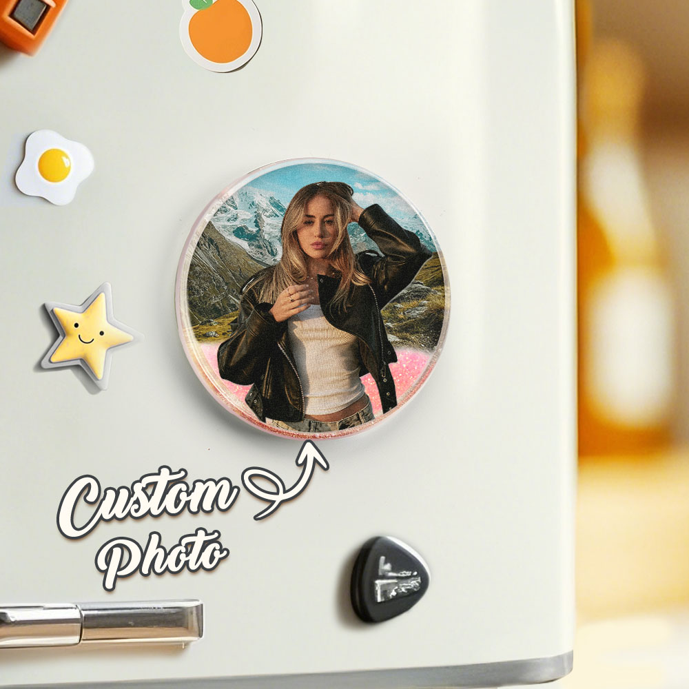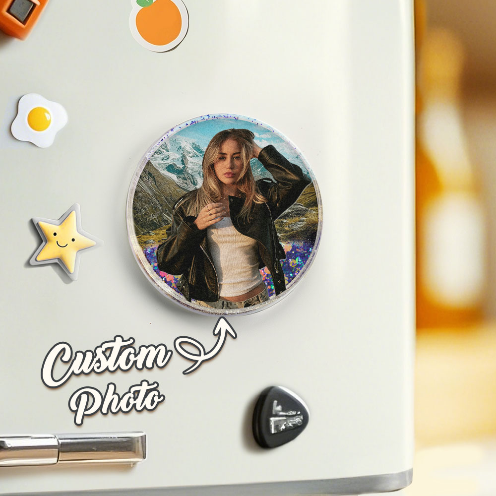 Custom Round Quicksand Fridge Magnet Personalized Photo Refrigerator Magnet for Her