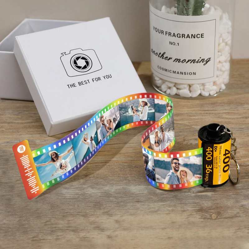 Custom Scannable Spotify Code Camera Roll Keychain Personalized Multiphoto Film Keychain Gifts for Lover