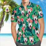 Custom Tropical Shirts Custom Pet Face Hawaiian Shirt Leaves & Flowers Shirt