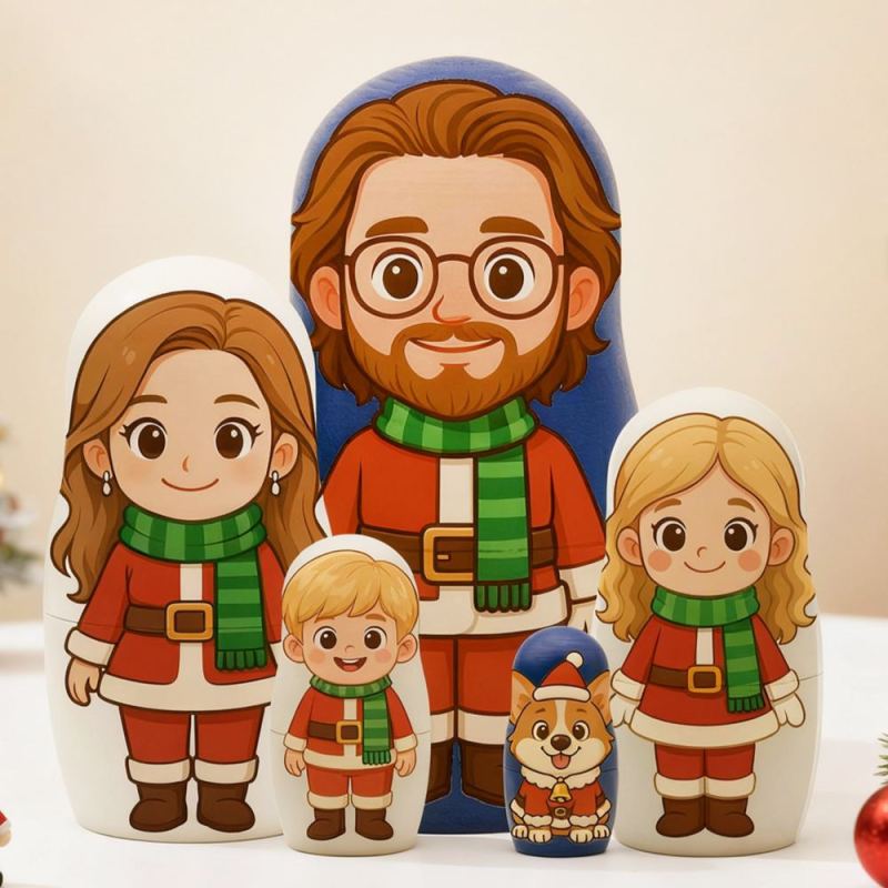 Customized Head Portrait Nesting Dolls Christmas Costume Custom Photo Family Portrait Cartoon Style Gift Photo Christmas Gift