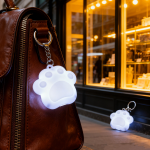 A compact and adorable touch-sensing LED night light keychain designed for everyday convenience and style. This rechargeable mini accessory doubles as a practical night light and a cute bag charm, featuring a white cat paw design that adds personality to your keys, backpacks, and handbags. Equipped with a double-chain electroplated keyring and a secure clip, it is easy to attach and carry anywhere.
