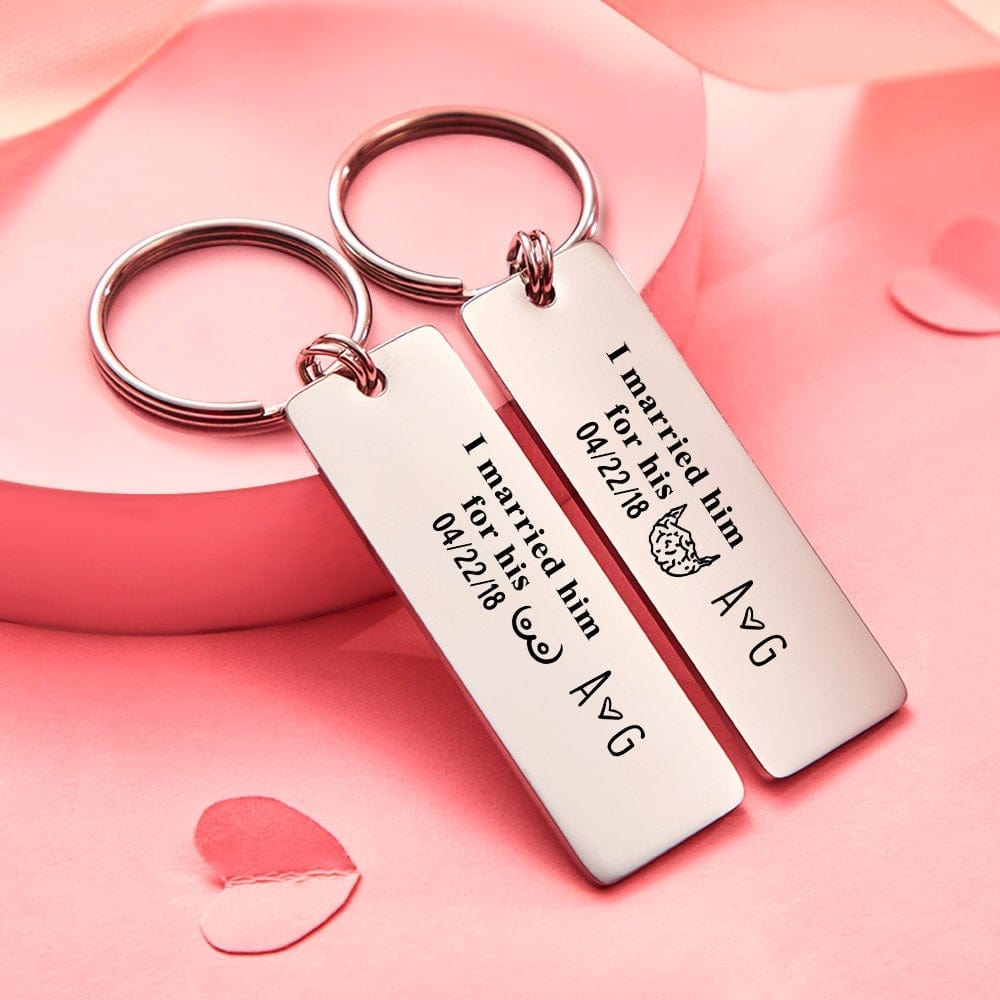 Date Keychain with Surname Initial Letter Gifts for Couples Keychain Set
