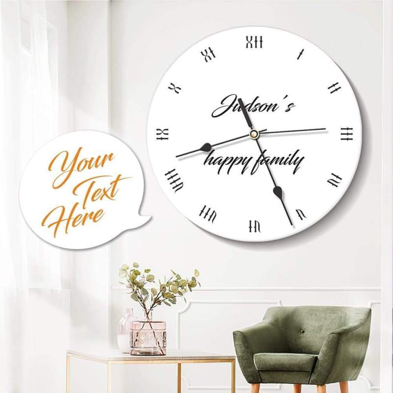 • This personalised wall clocks serves as a perfect gift for a new home gift. The high-quality printed wall clock will be an essential decoration of your home, office, or kitchen wall.