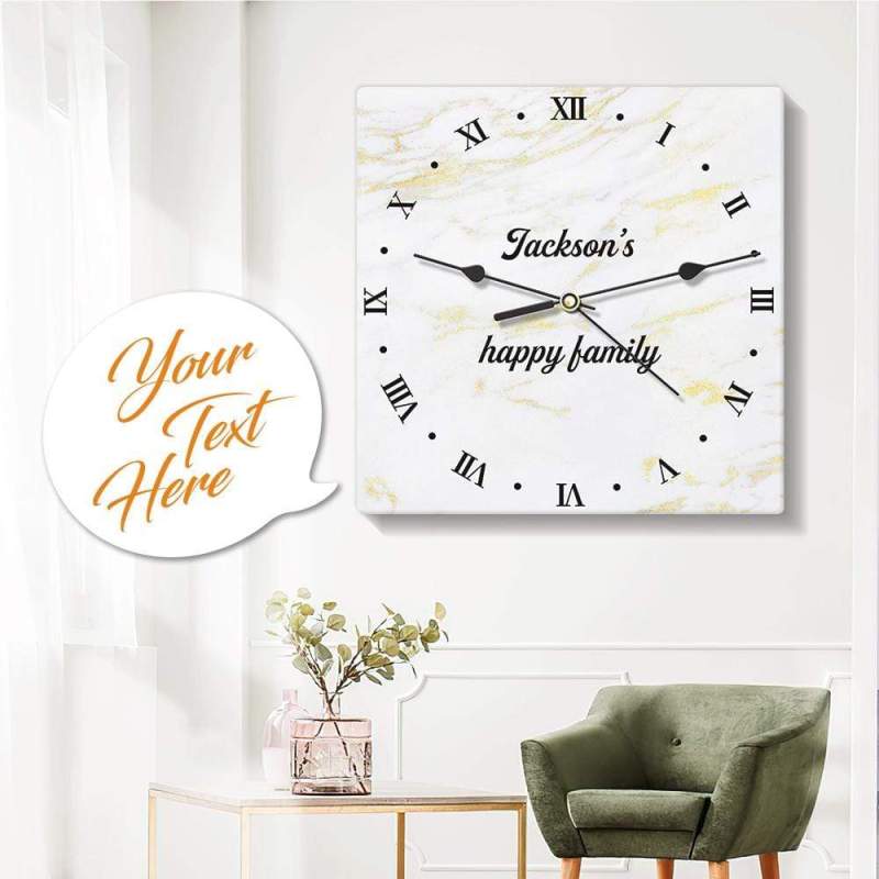 - This personalised wall clocks serves as a perfect gift for a new home gift. The high-quality printed wall clock will be an essential decoration of your home, office, or kitchen wall.