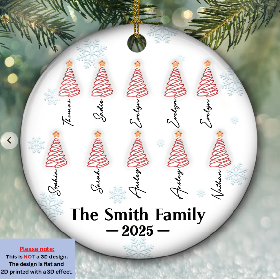 Family Christmas Tree Names Personalized Custom 3D Inflated Effect Ceramic Ornament