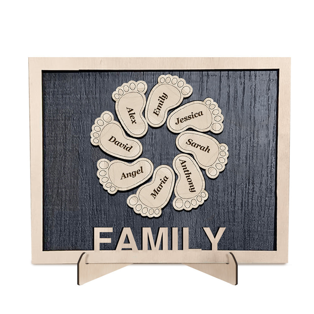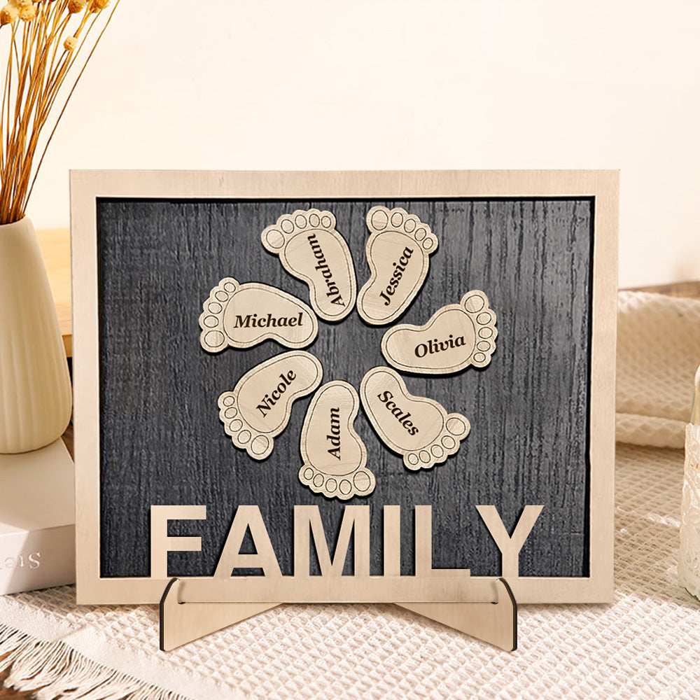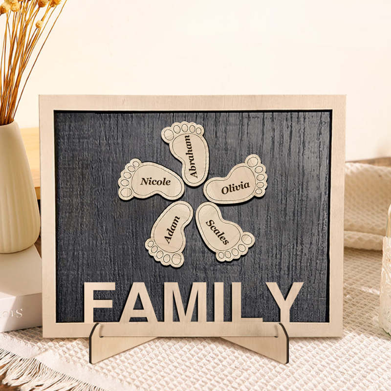 Personalized Footprint Wooden Plaques Decor Sign Family Names Desk Plaque Gifts for Family