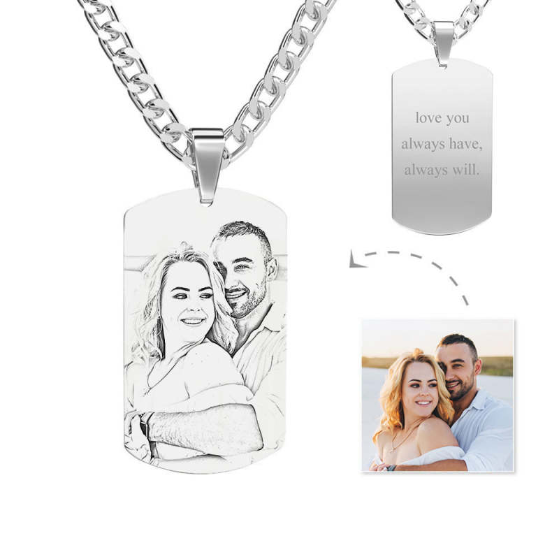 Mens Necklace, Engraved Necklace, Personalised Photo Necklace Photo Dog Tag