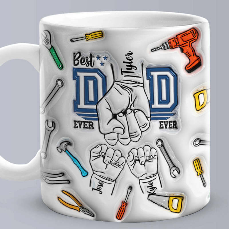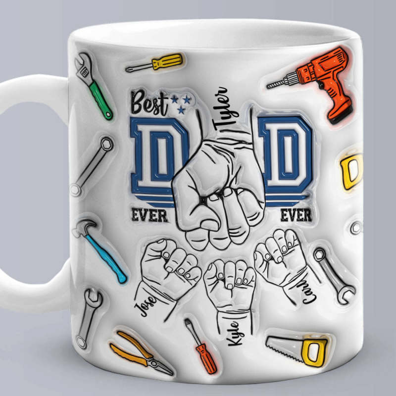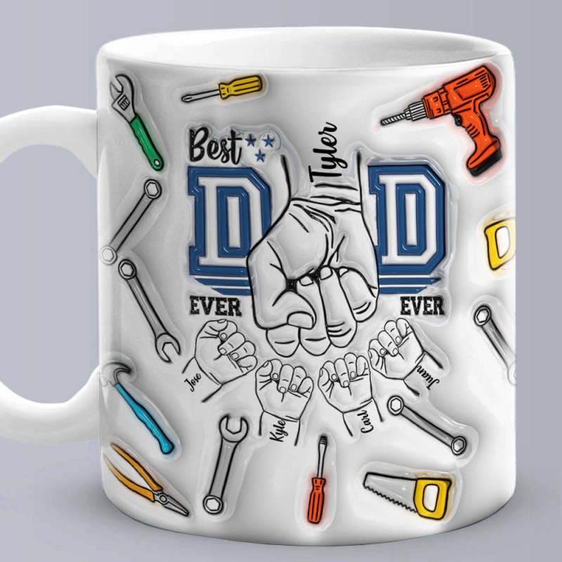 Father's Day Gifts Custom 1-6 Kids Personalized Names 3D Inflated Effect Printed Mug Best Dad Ever - Fixing Tools