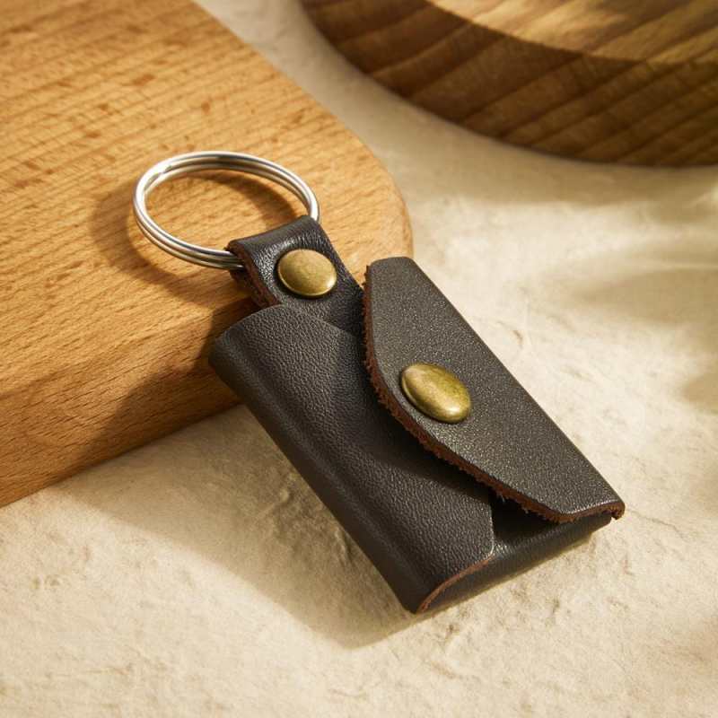 Father's Day Gifts Mini Envelope Photo Keychain Personalized Vintage Engraved Leather Keychain