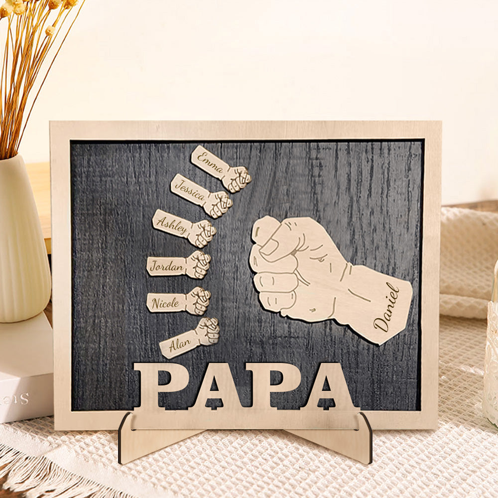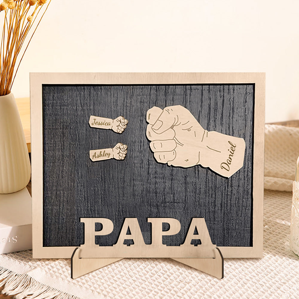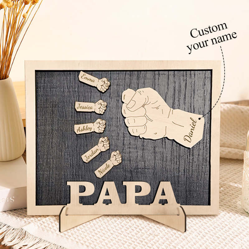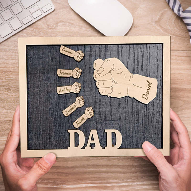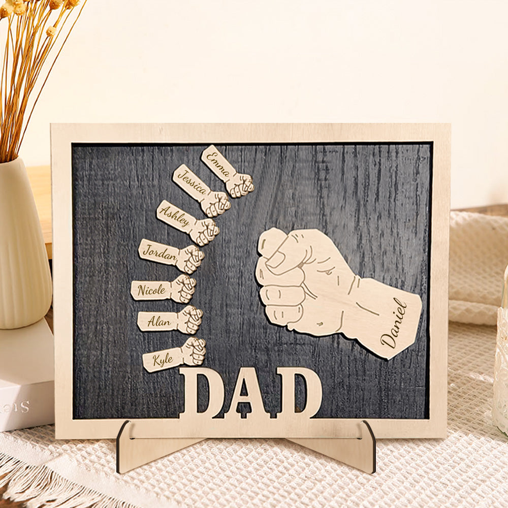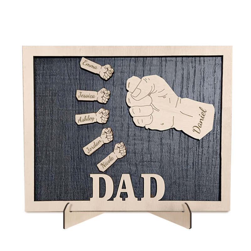 Personalized Fists Father's Day Wooden Plaques Decor Sign Family Names Desk Plaque for Father