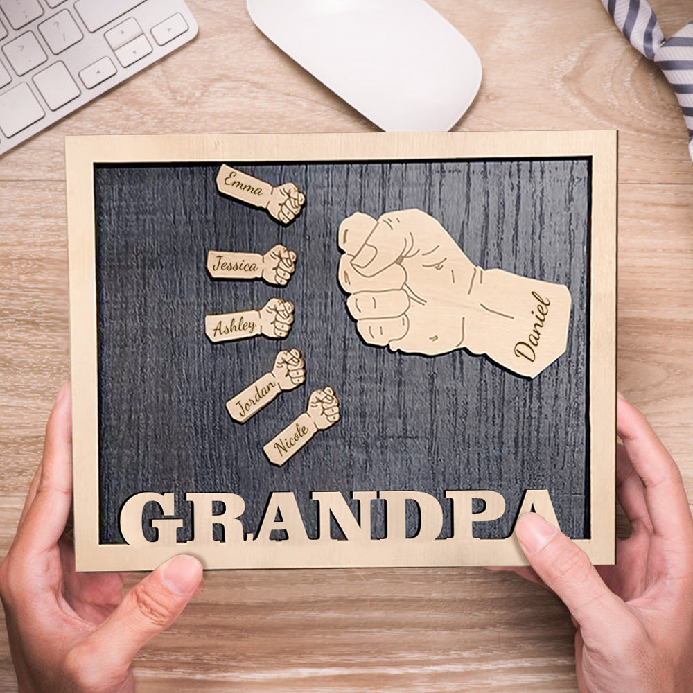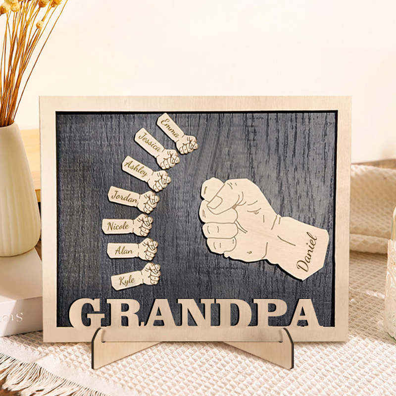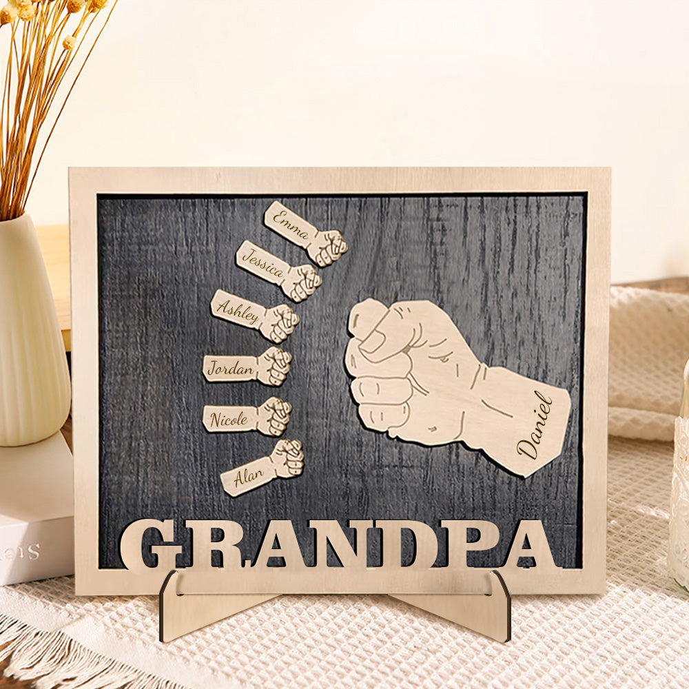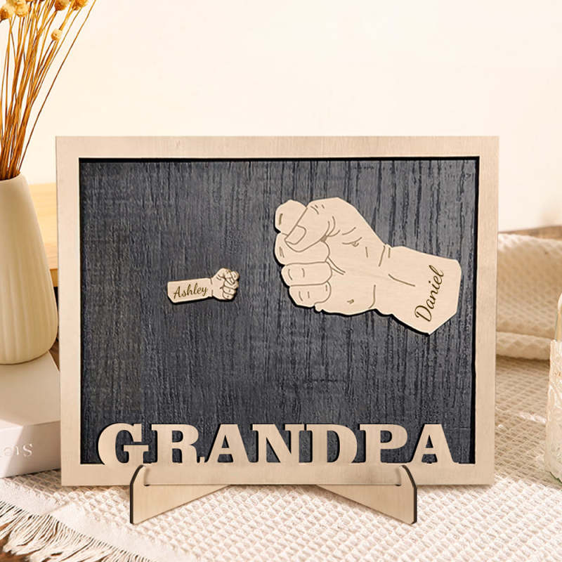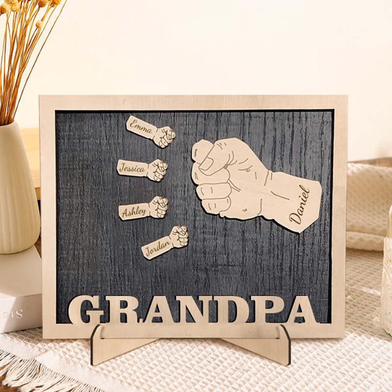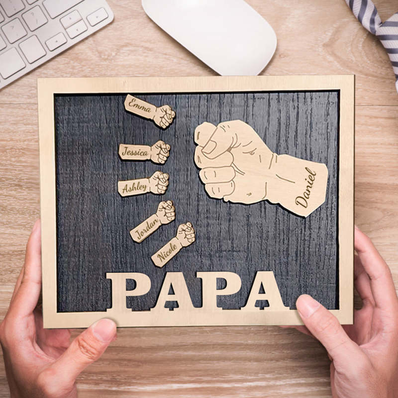 Personalized Fists Father's Day Wooden Plaques Decor Sign Family Names Desk Plaque for Father