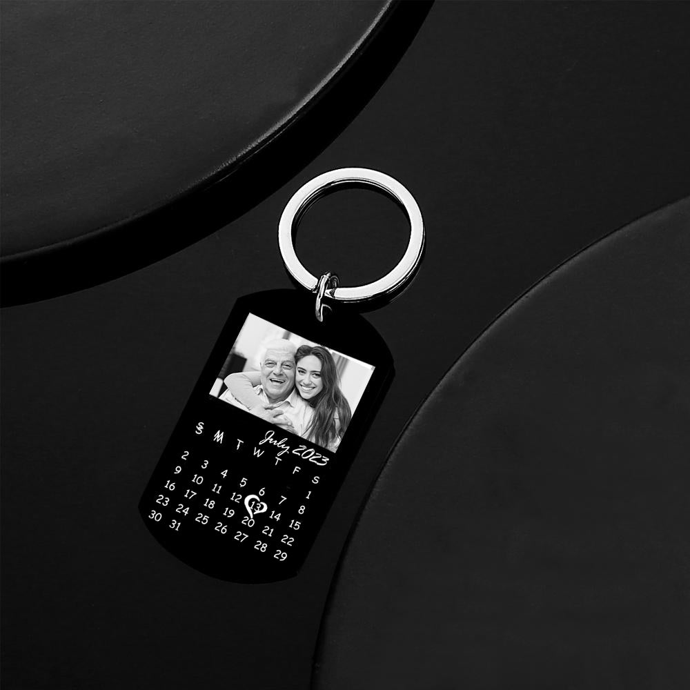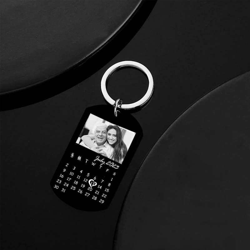Father's Keychain Custom Black Filter Photo Calendar Keychain Unique Design Gift For Dad
