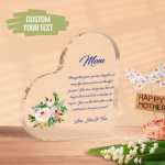 Custom Plaque Acrylic Heart for Mum Personalised Mother's Day Gifts