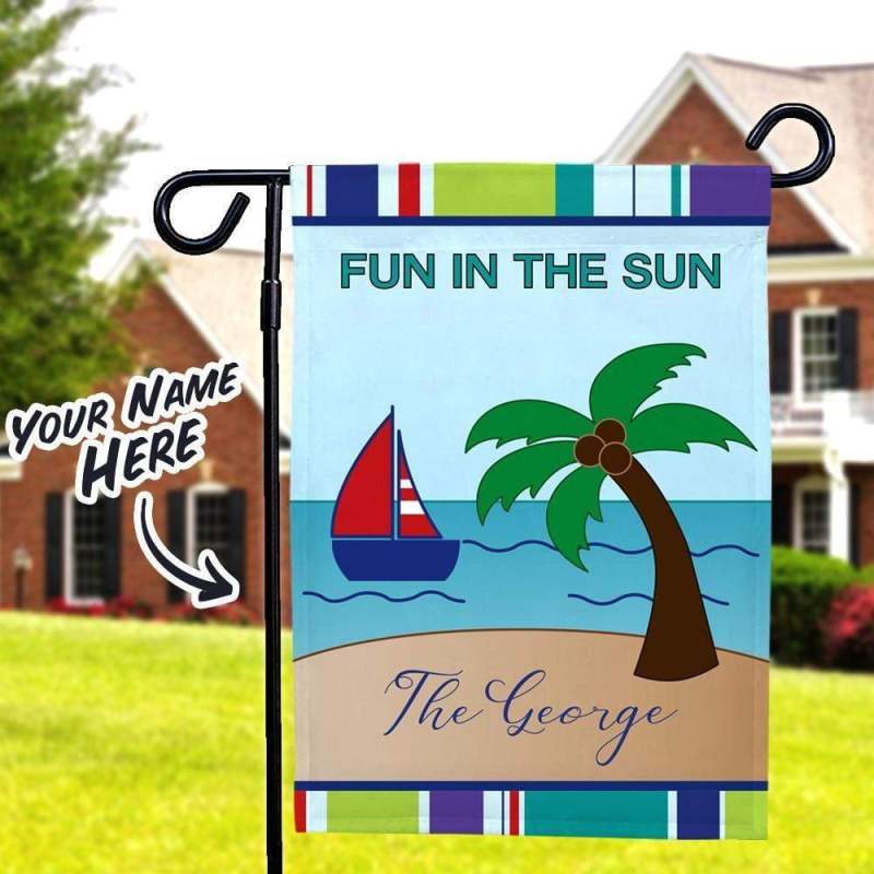 Fun In The Sun Custom Summer Garden Flag With Family Name