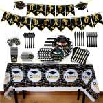 Graduation Disposable Plates Set Plates Napkins Cups Tablecloth Straws Banners for Congrats Graduation Party Decorations