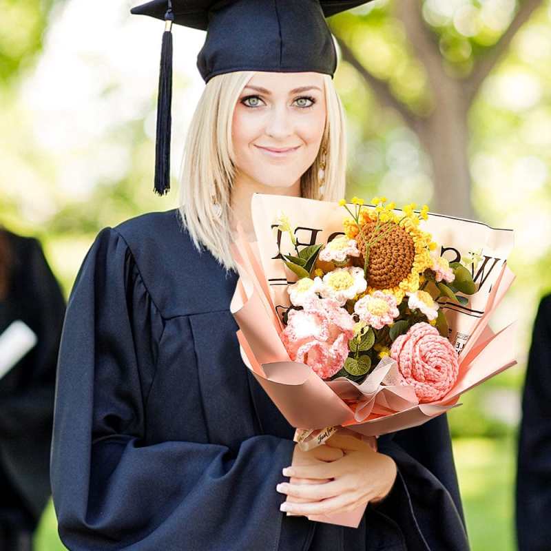 Graduation Gift Crochet Flowers Bouquet Handmade Knitted Sunflower Bouquet Gift for Her