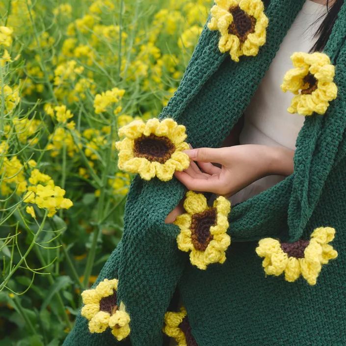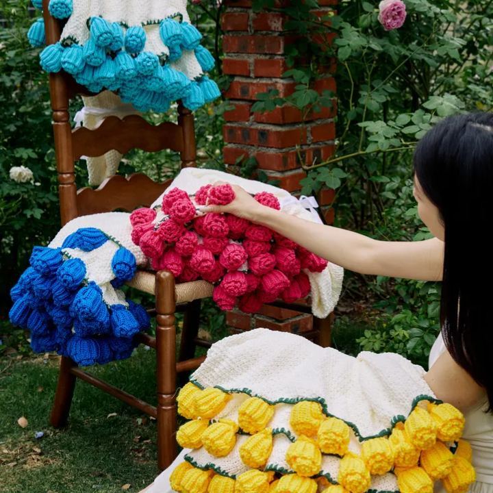 Tell the most lasting confession with blooming woolen flowers! This handmade blanket is specially made of woolen yarns of different colors, so that the petals present a natural blooming effect. It is a sweet token of love on Valentine's Day, and a grateful hug on Mother's Day, wrapping your loved one with softness 365 days a year.