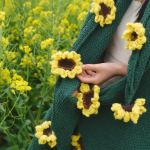Hand-Knitted Red Rose & Sunflower Blanket Ready-Made Gift for Mother's Day