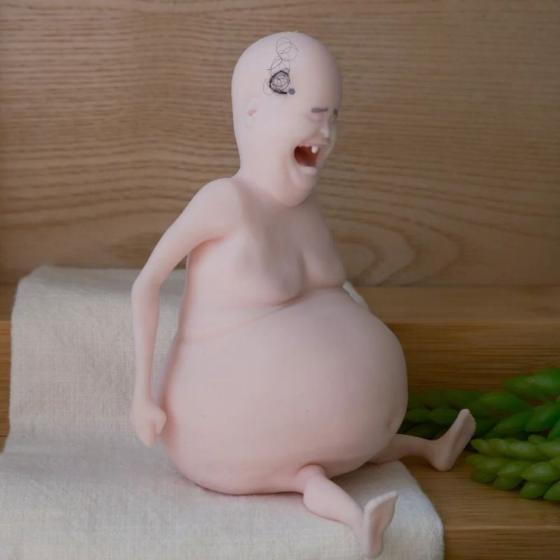 Bald Head Pinch Funny Happy Ugly Doll Vinyl Doll Ornaments Fun Silicone Hand-Made Doll