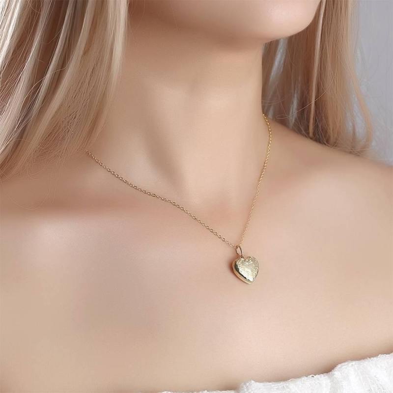 Heart Photo Locket Necklace With Name Embossed Printing 14k Gold Plated