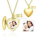 Heart Photo Locket Necklace With Name In Flower Jewelry Box Gifts for Mom 3 Colors