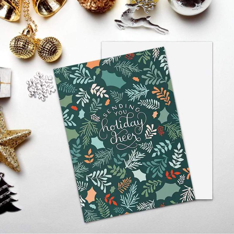 Illustrated Botanical Christmas Card Sending Cheer-Vertical Card