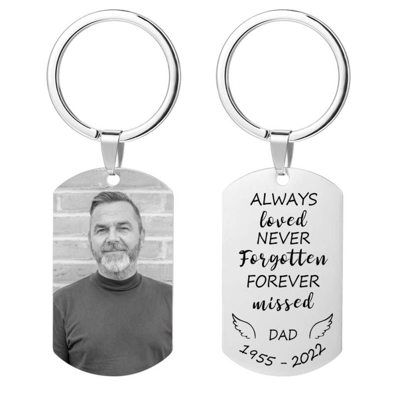 Cherish your memories forever with our Memorial Keychain! Crafted from metal, this elegant and timeless memento will serve as a beautiful reminder of your loved one and the precious moments you shared. You'll always feel their presence when reaching for your keys.