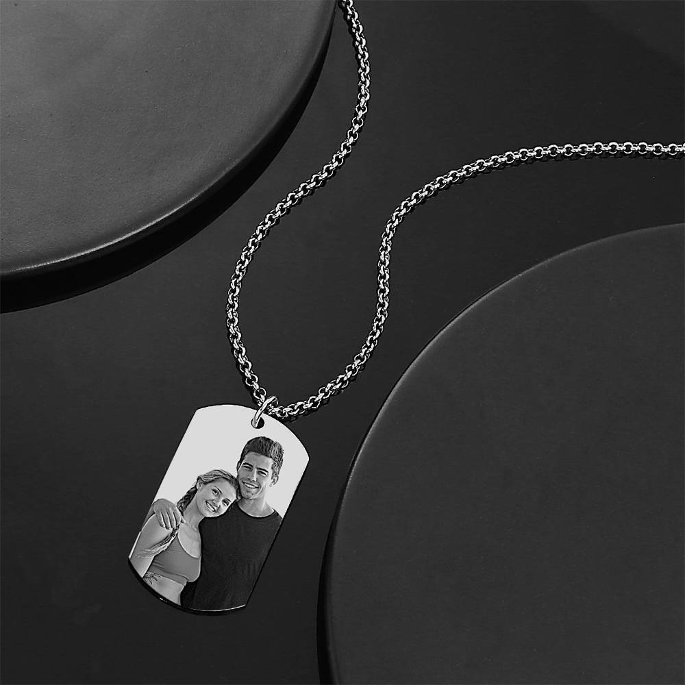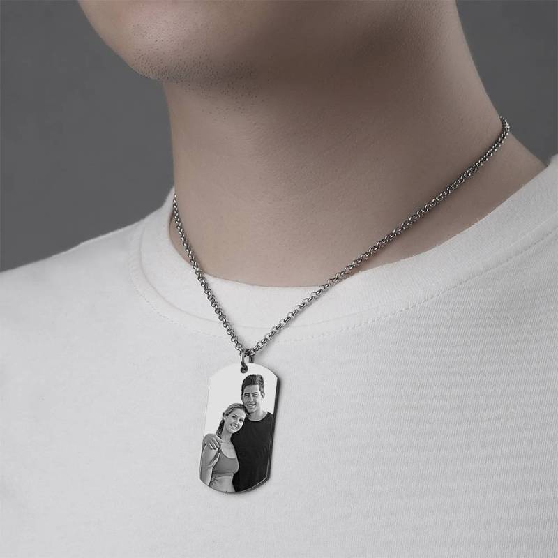 Men's Photo Engraved Tag Necklace with Engraving Photo Dog Tag