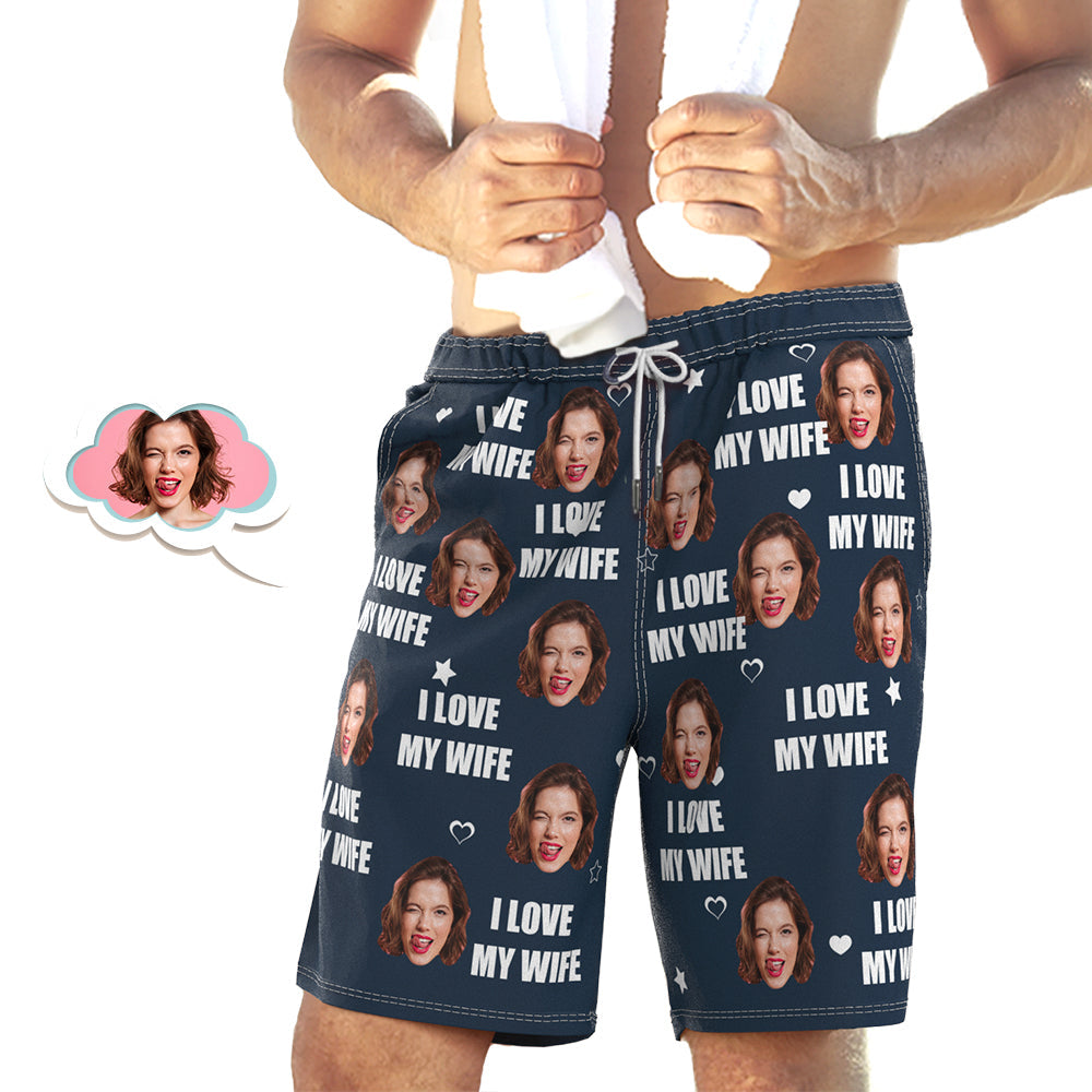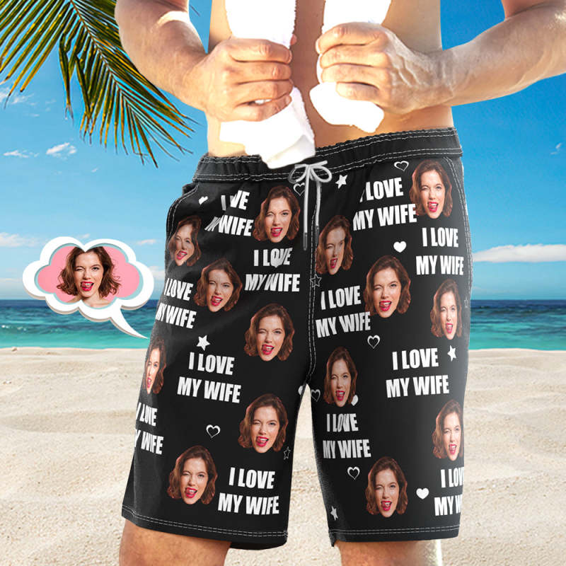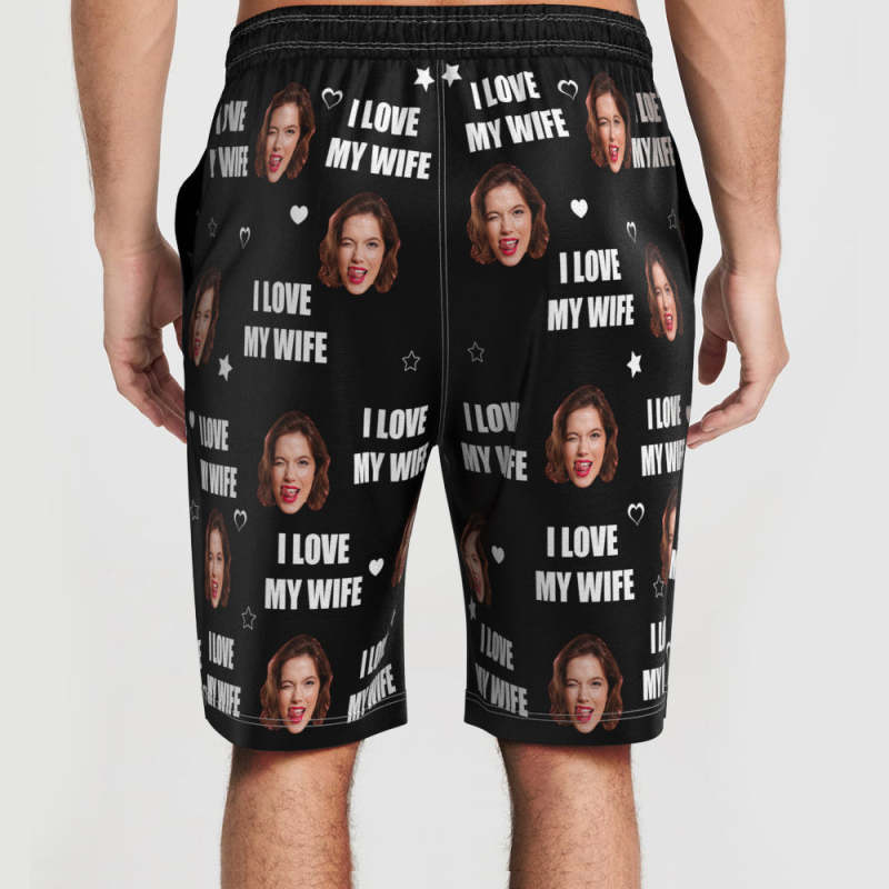 Men's Custom Face Beach Shorts I LOVE MY GIRLFRIEND 4 Colors Available
