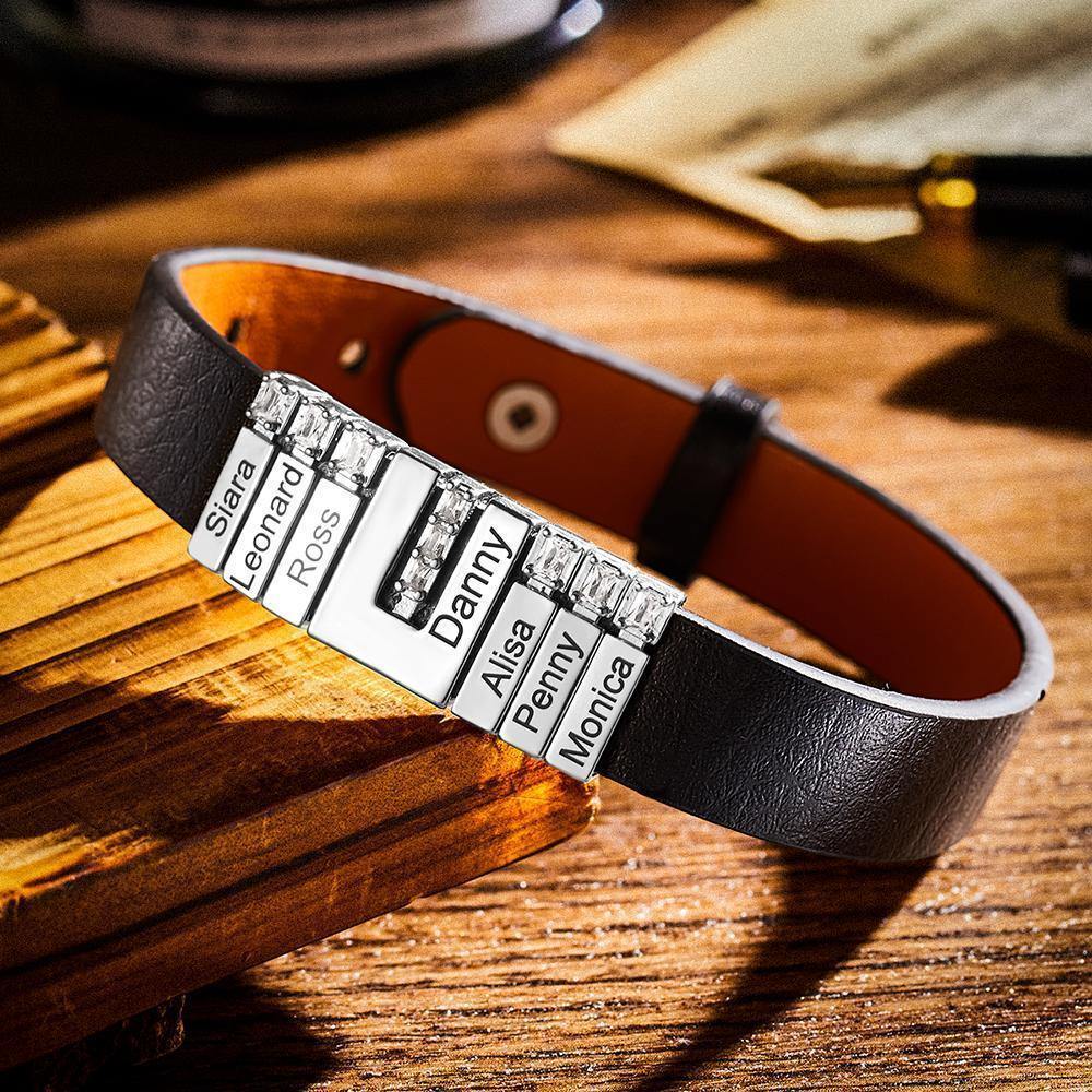 Men's Personalized Leather Bracelet With Adjustable Diamond Beads, Perfect Gift For Father's Day Rose Gold Plated Stainless Steel
