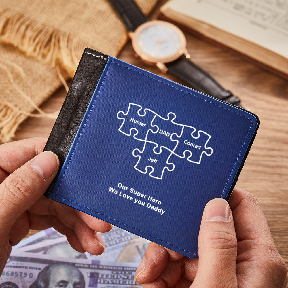 Men's Wallet With Name Engraved Father's Day Gifts for Dad with 3 Kids' Names