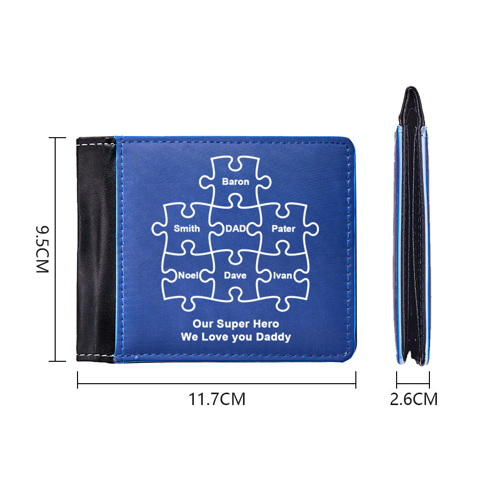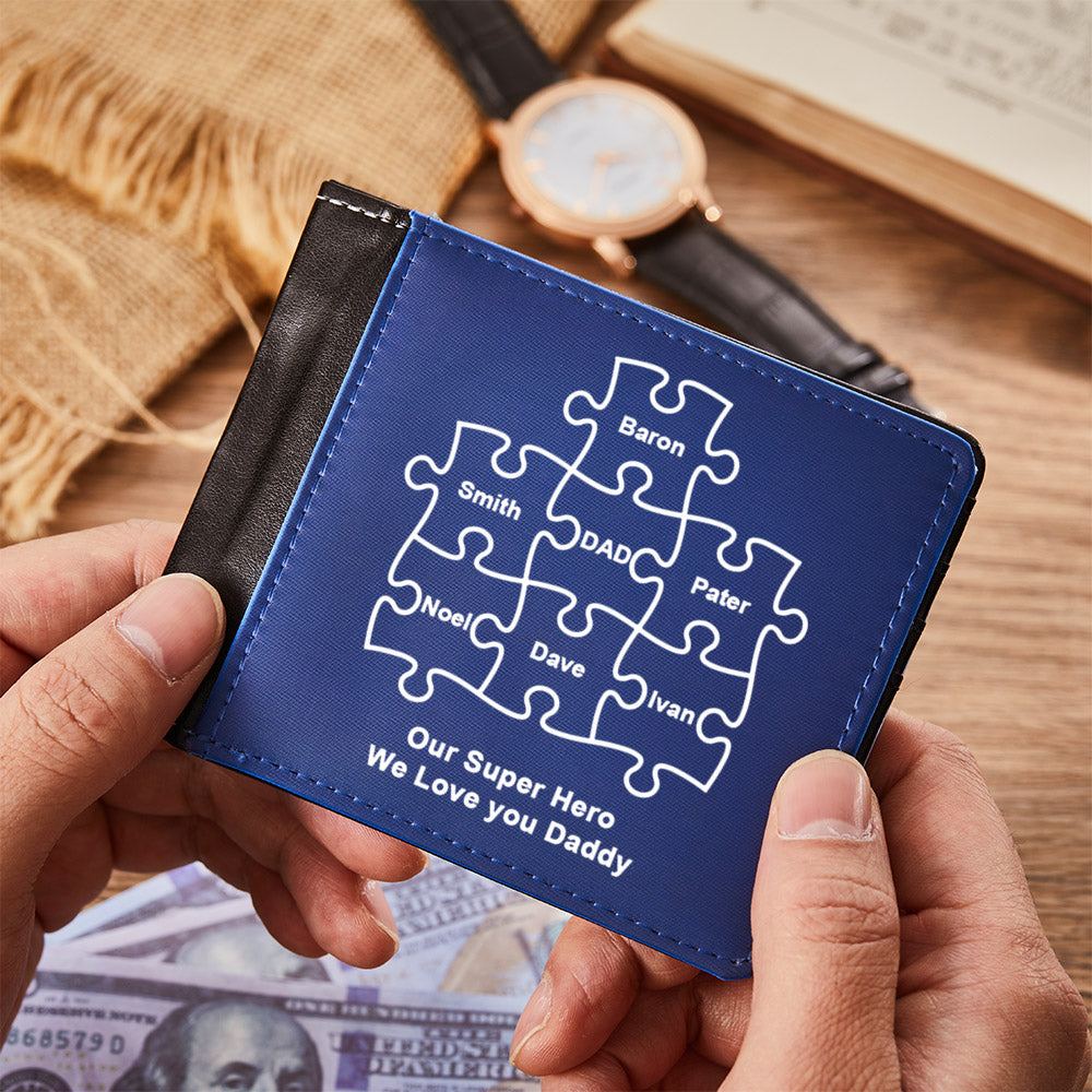 Men's Wallet with Names Engraved Father's Day Gifts for Dad with 6 Kids' Names Bifold