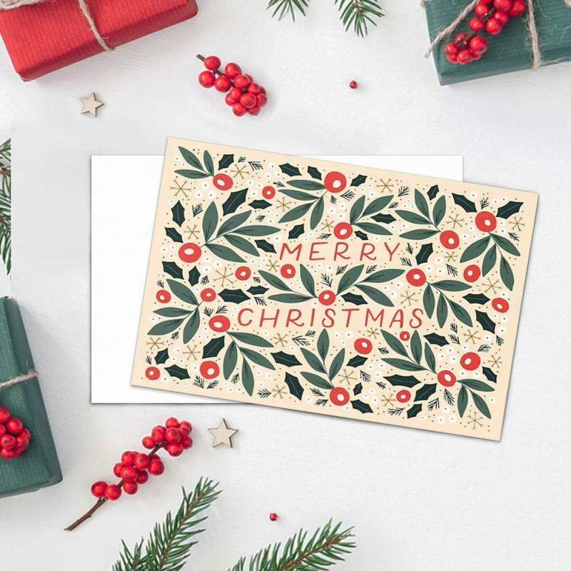 Merry Christmas Card Holiday Card Botanic -Horizontal Card