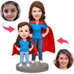 Custom Bobblehead with Engraved Text Mothers Day Gift - Super Mother and Daughter