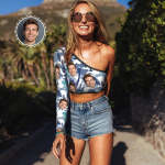 One Side Off Shoulder Top With Face Personalized Gifts for Women - Leaves