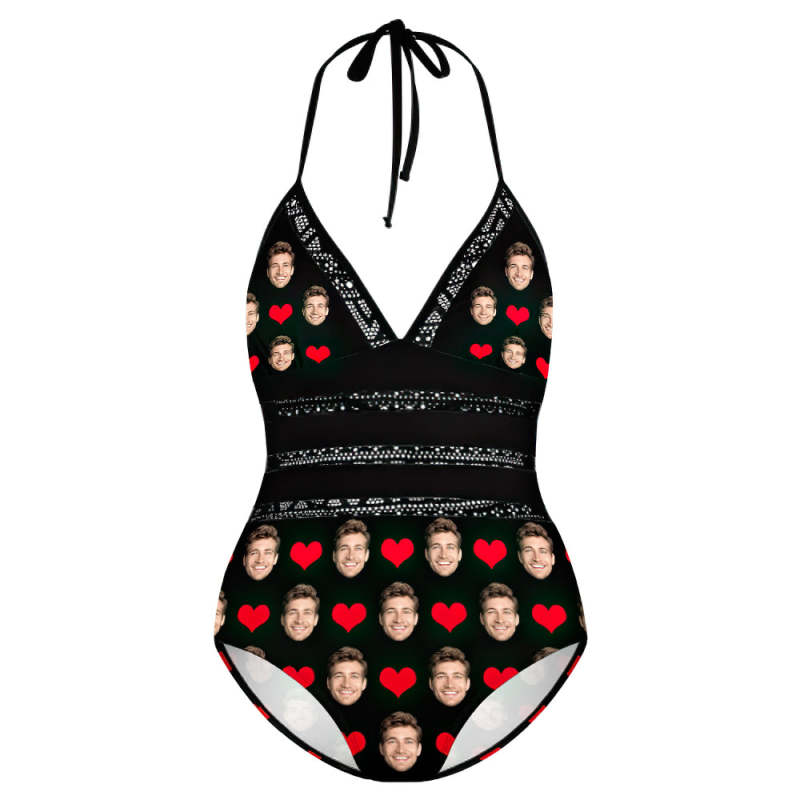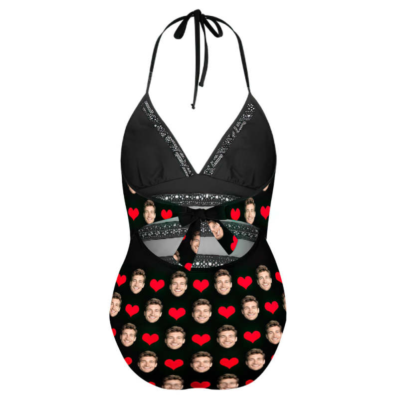 Personalised Plus Size Swimwear Gifts for Girlfriend With Face and Hearts