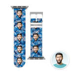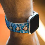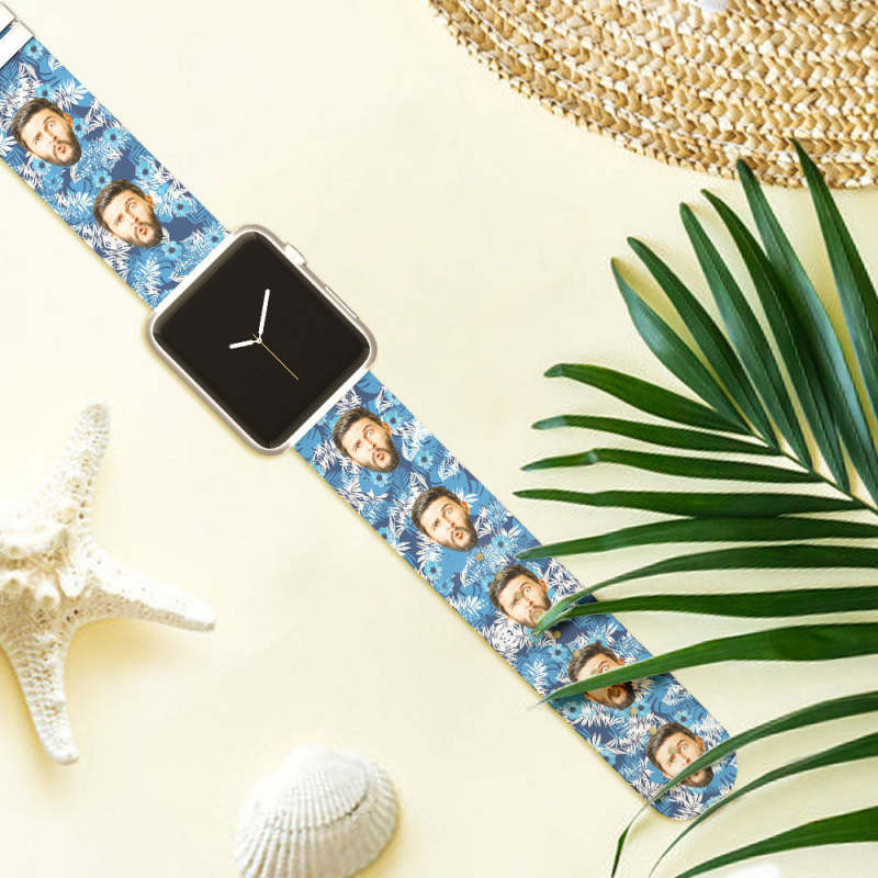 Personalized Apple Watch Band With Face Gifts for Him Hawaiian Style - Blue
