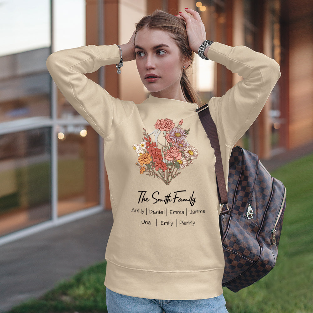 Personalized Birth Flower Bouquet Sweatshirt Custom Birth Flower Hoodie Mother's Day Gifts