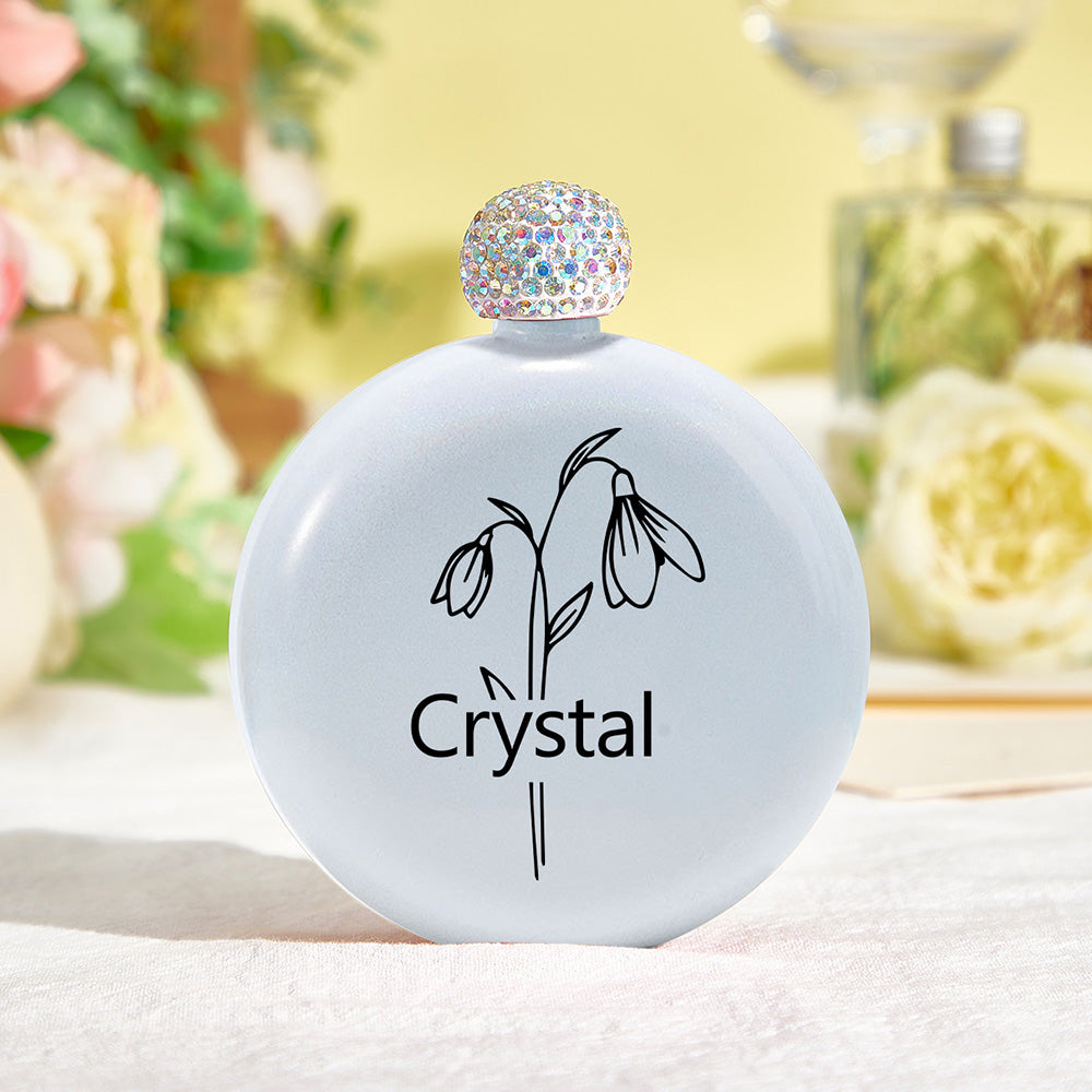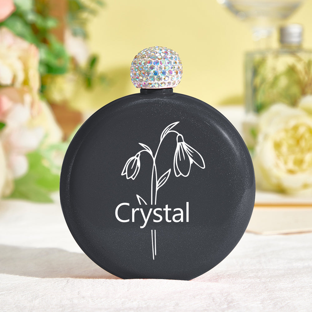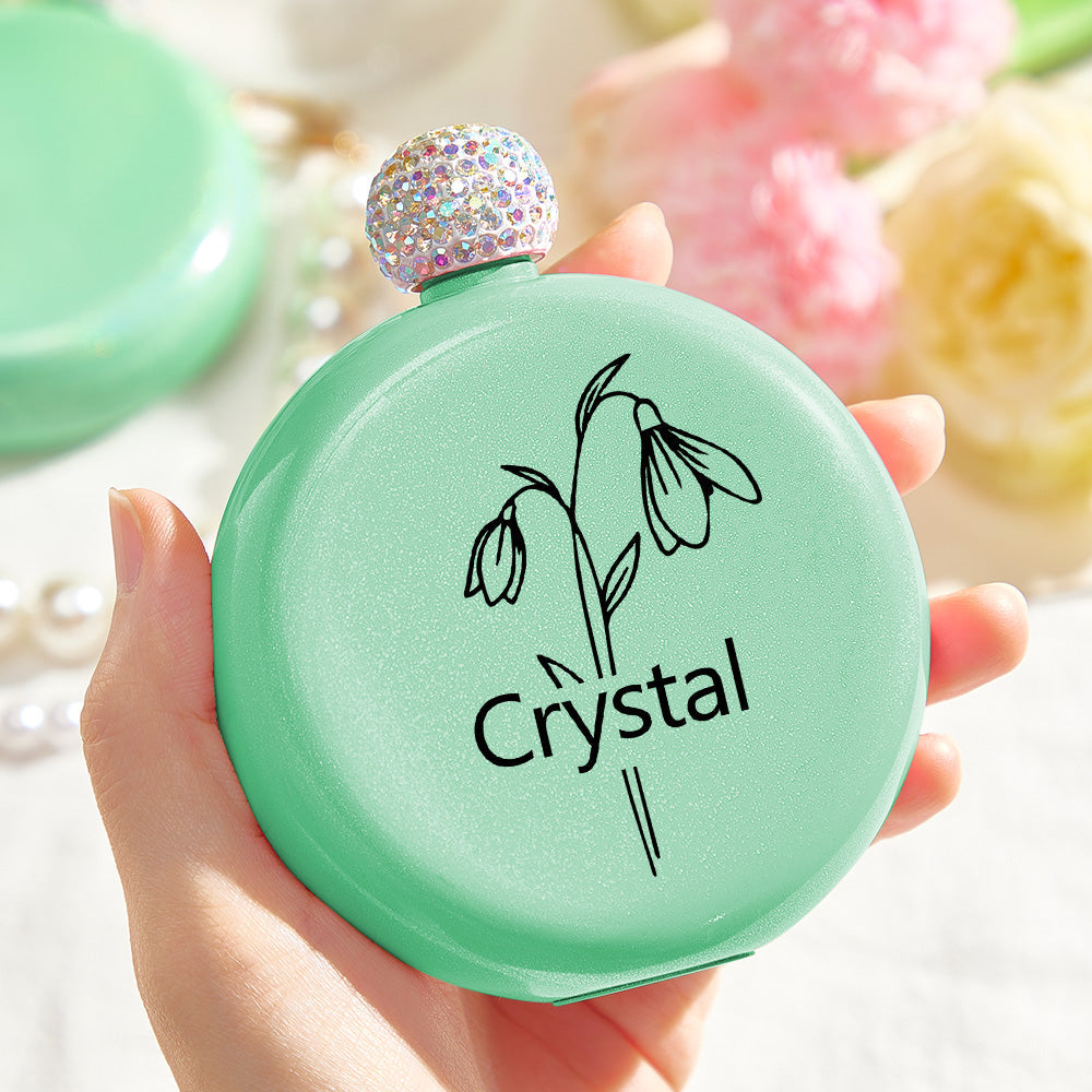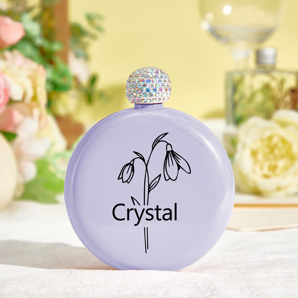 Personalized Birth Flower Round Flasks with Name 5oz Glitter Flask Wedding Birthday Gift for Her