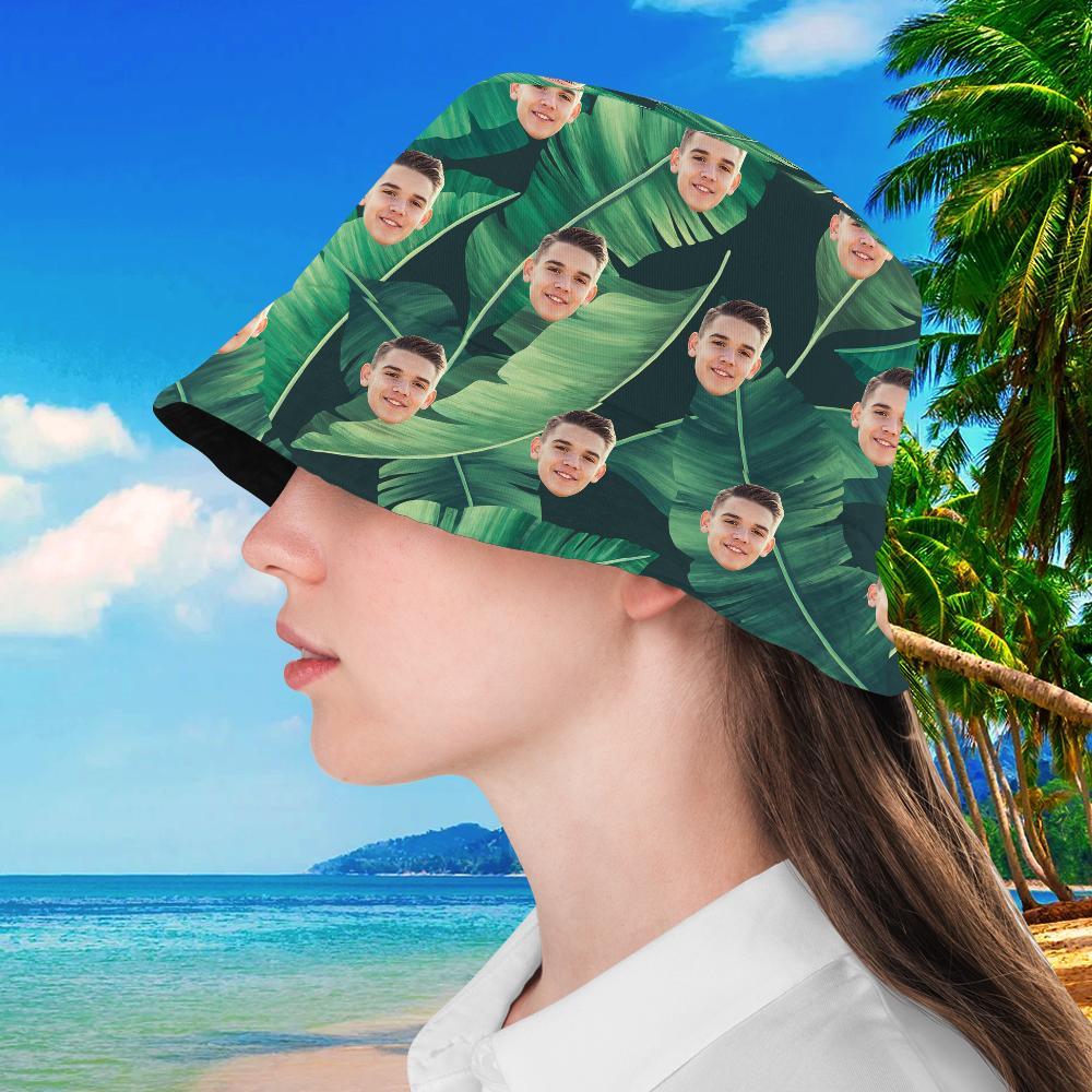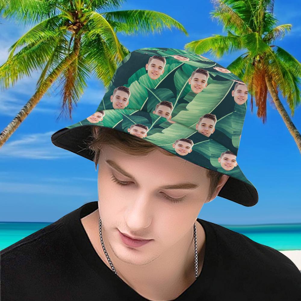 Personalized Face Leaves Hawaiian Bucket Hat Summer Beach Sports Unisex Hat Custom 2 Face